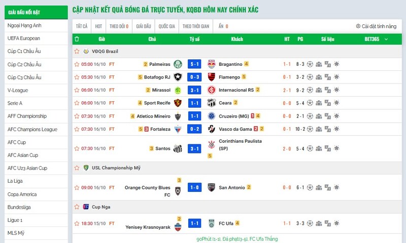 Cập nhật kqbd mọi giải đấu lớn nhỏ